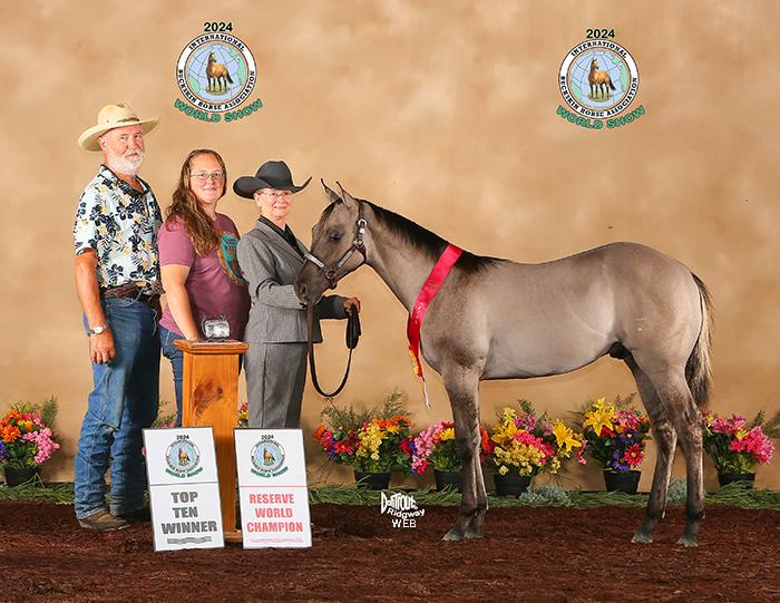BZ OneMorNiteNVegas started his show career as a weanling earning IBHA Reserve World Champion Weanling Stallion Halter and Placing top 10 in Dun Factor.