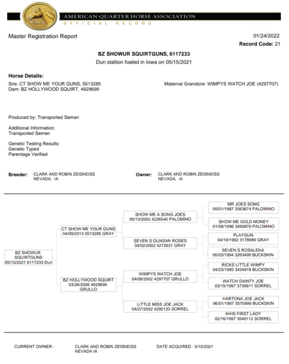 STALLION SERVICES ARE OPEN FROM JANUARY 30-JULY 1. Shipped Semen Date available TBD.